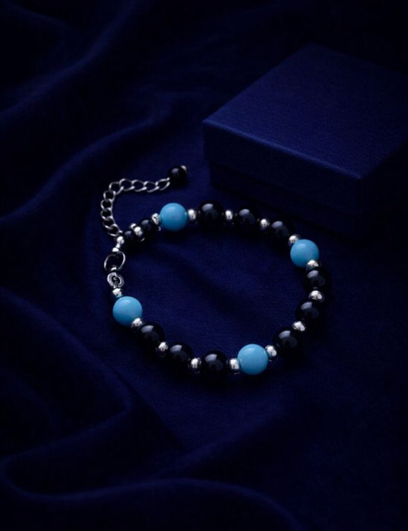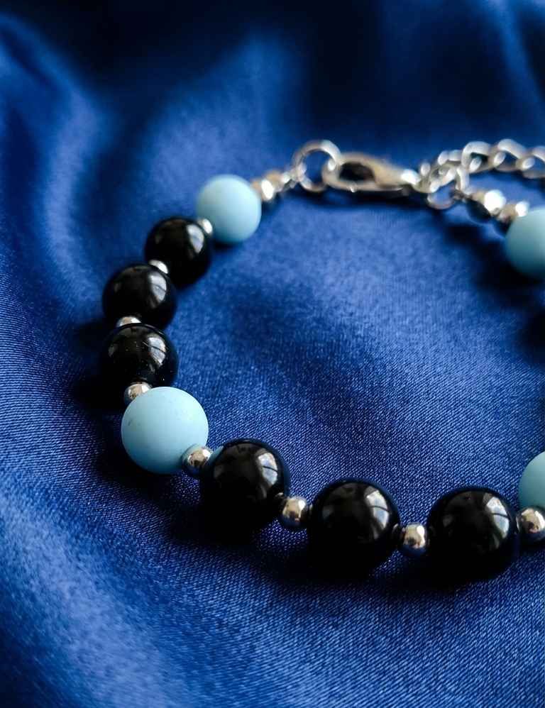 Этот браслет создан для маленького исследователя. Он помогает чувствовать себя спокойно и уверенно. - Черный агат успокаивает нервы и помогает справляться с новыми ситуациями. - Лазурный нефрит улучшает концентрацию и внимание, полезно для обучения. - Гематин поддерживает энергию и активность во время игр. Легкий и яркий, этот браслет станет отличным спутником для важных событий и ежедневных приключений!