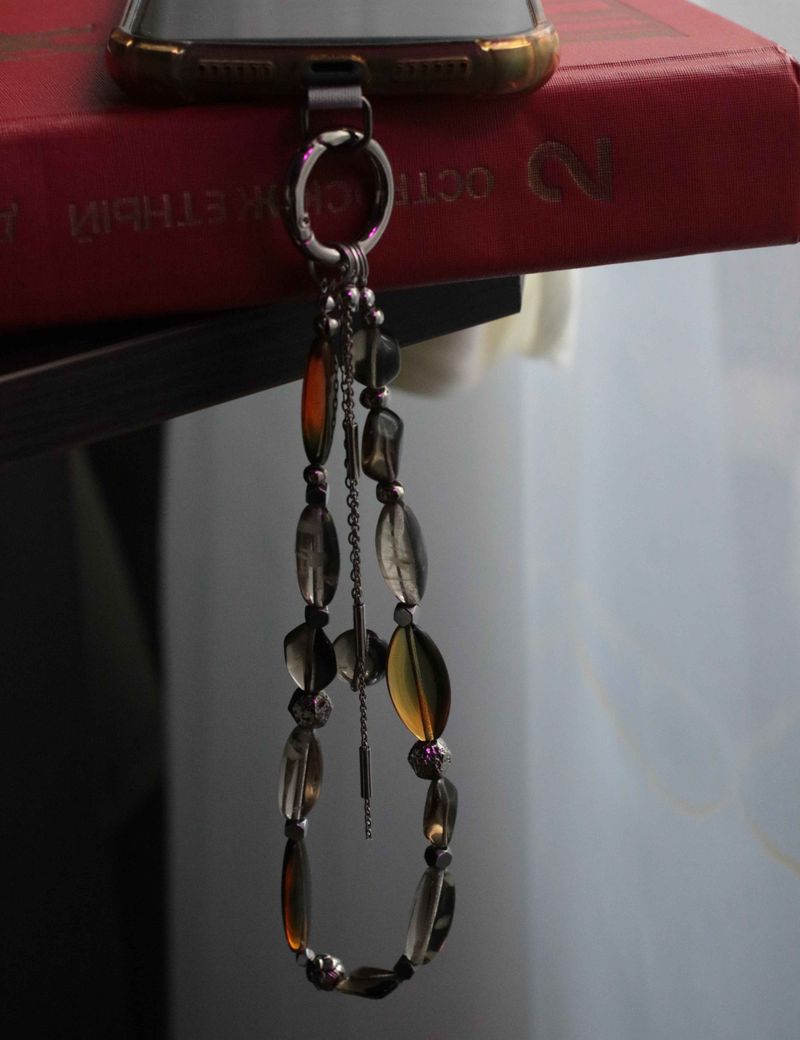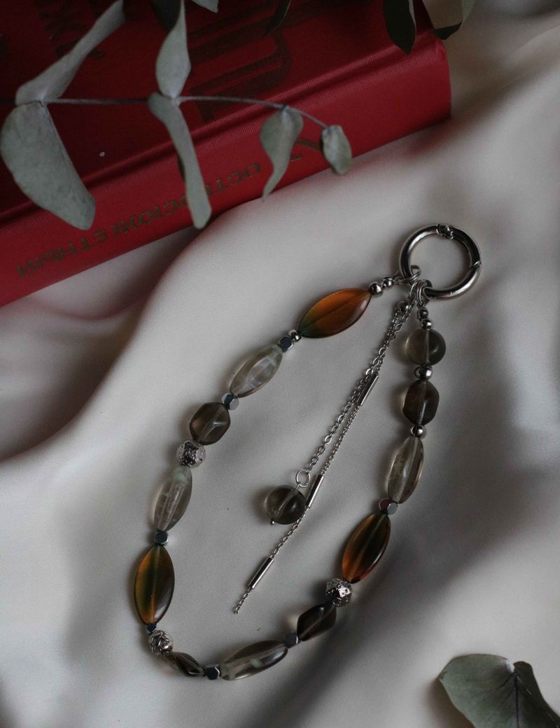 Минималистичный, но выразительный брелок и обвес, который можно повесить и на телефон, и на сумку, и на ключи. Создан из стеклянных бусин болотного цвета с теплым переливом осенних листьев. Бусины разных форм дополняет гематин с металлическим блеском и цепочка из нержавеющей стали. Украшение смотрится органично, будто найдено в прогулке по осеннему лесу. Идеально для тех, кто ценит ручную работу, детали и хочет добавить природного уюта в свой образ.