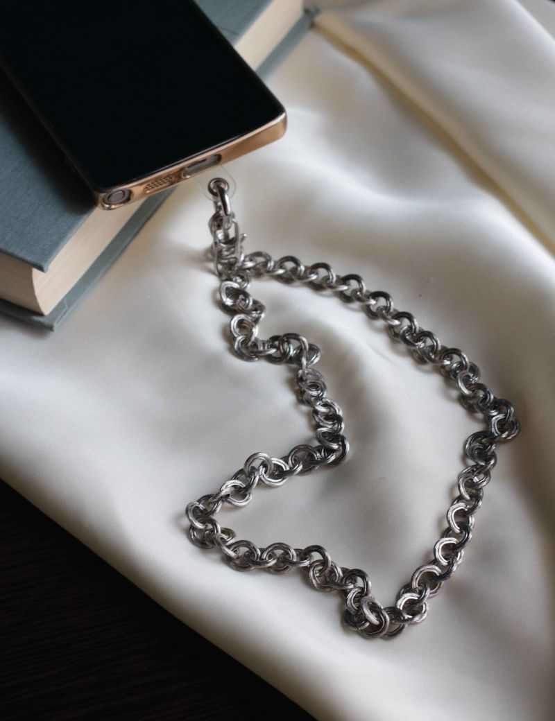 Этот стильный и брутальный обвес для телефона — не просто аксессуар, а настоящее выражение характера. Сочетание матовых лавовых бусин, глянцевого гематита и металлической латунной цепочки создаёт эффектный контраст, который смотрится особенно круто в повседневных образах. Можно носить как кросс-боди или просто накинуть несколько раз на запястье — и телефон всегда под рукой. Подходит для большинства чехлов с разъемом для зарядки. Надёжная фурнитура, лёгкий вес и уникальный дизайн.