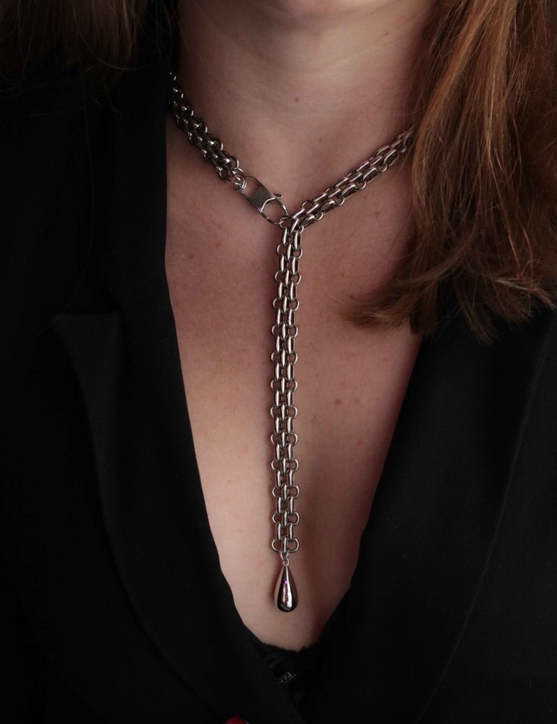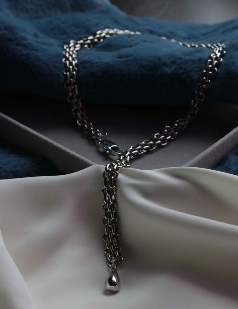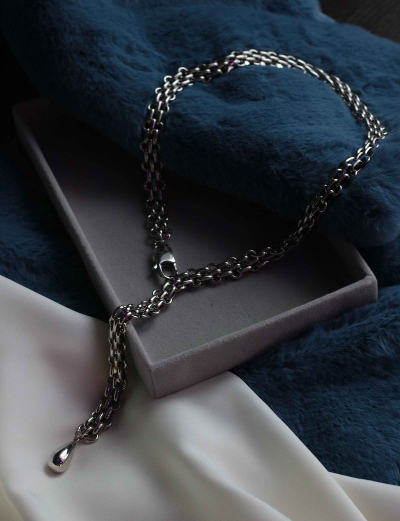 Это колье-галстук из массивной цепочки из нержавеющей стали — идеальный аксессуар для смелых и уверенных в себе. С его помощью вы сможете легко регулировать длину, благодаря удобному карабину, и подобрать идеальное положение для вашего стиля. Элегантный металлический блеск и строгая форма цепочки сделают любое ваше платье или костюм более выразительным. Простой, но эффектный дизайн сочетает в себе стиль и современность, превращая каждый наряд в настоящий шедевр!